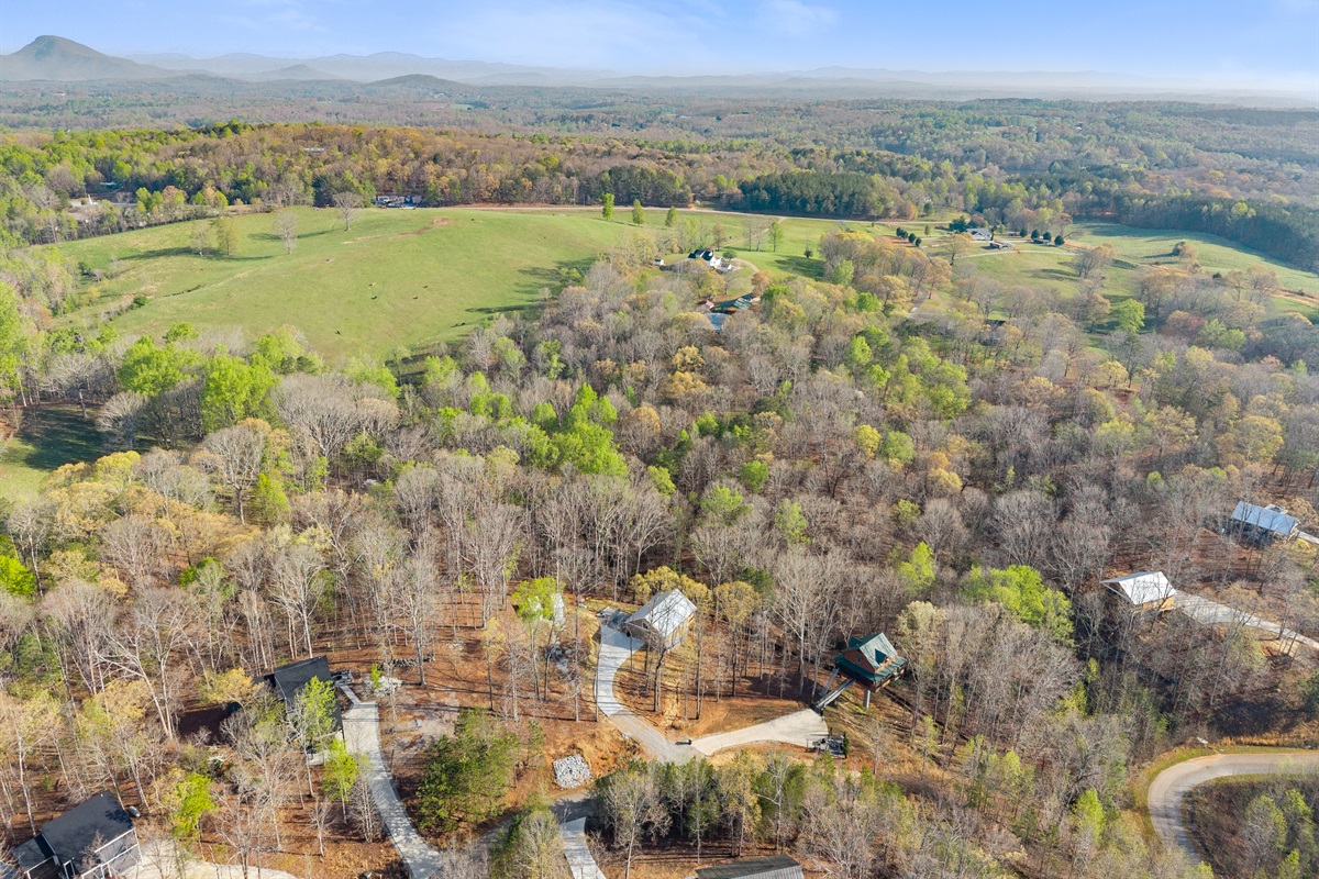 Tucked away among the trees and overlooking the gentle cascade of a nearby waterfall, True Love Cabin offers the perfect mix of romance, seclusion, and modern luxury. Though not perched on poles, its elevation and views deliver the feeling of a true treehouse retreat—peaceful, airy, and beautifully connected to nature.